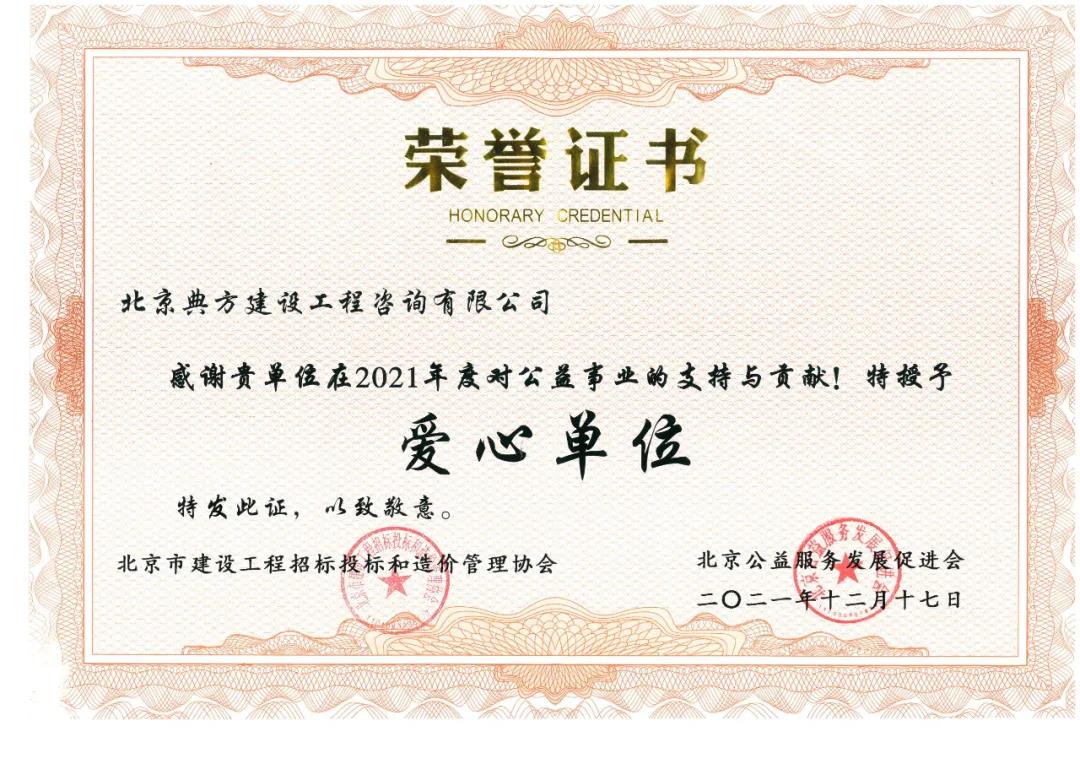 本次榮獲“愛心單位”證書,是由北京市建設工程招標投標和造價管理協會和北京公益服務發展促進會共同頒發的,2021年“鄉村教育振興公益幫扶計劃”公益捐款活動。活動目的是為貫徹《中共中央國務院辦公廳關于推進社會公益事業建設領域政府信息公開的意見》精神,充分發揮行業引領與帶動作用,加強愛心單位隊伍建設。